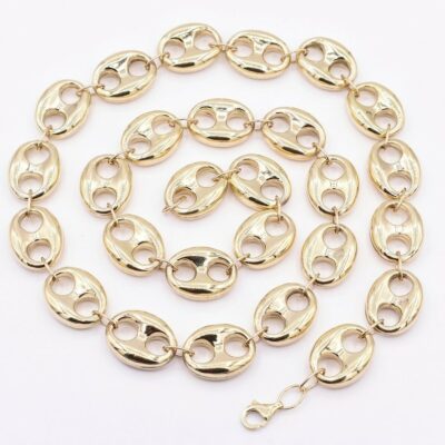 16mm Mariner Anchor Link Chain Necklace 26″ in Solid 10K Yellow Gold