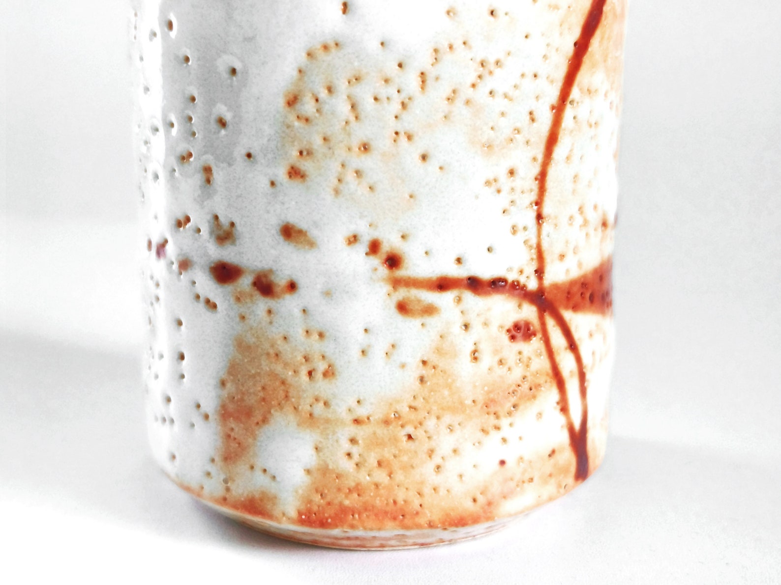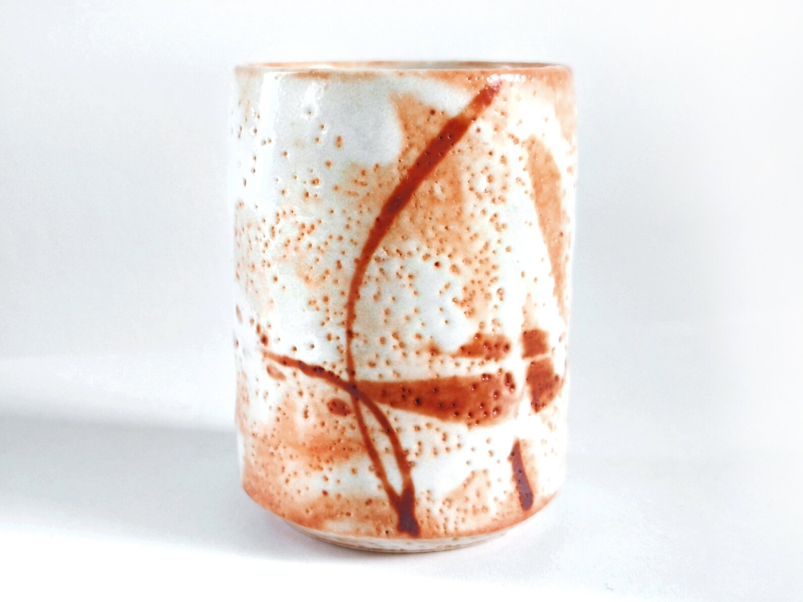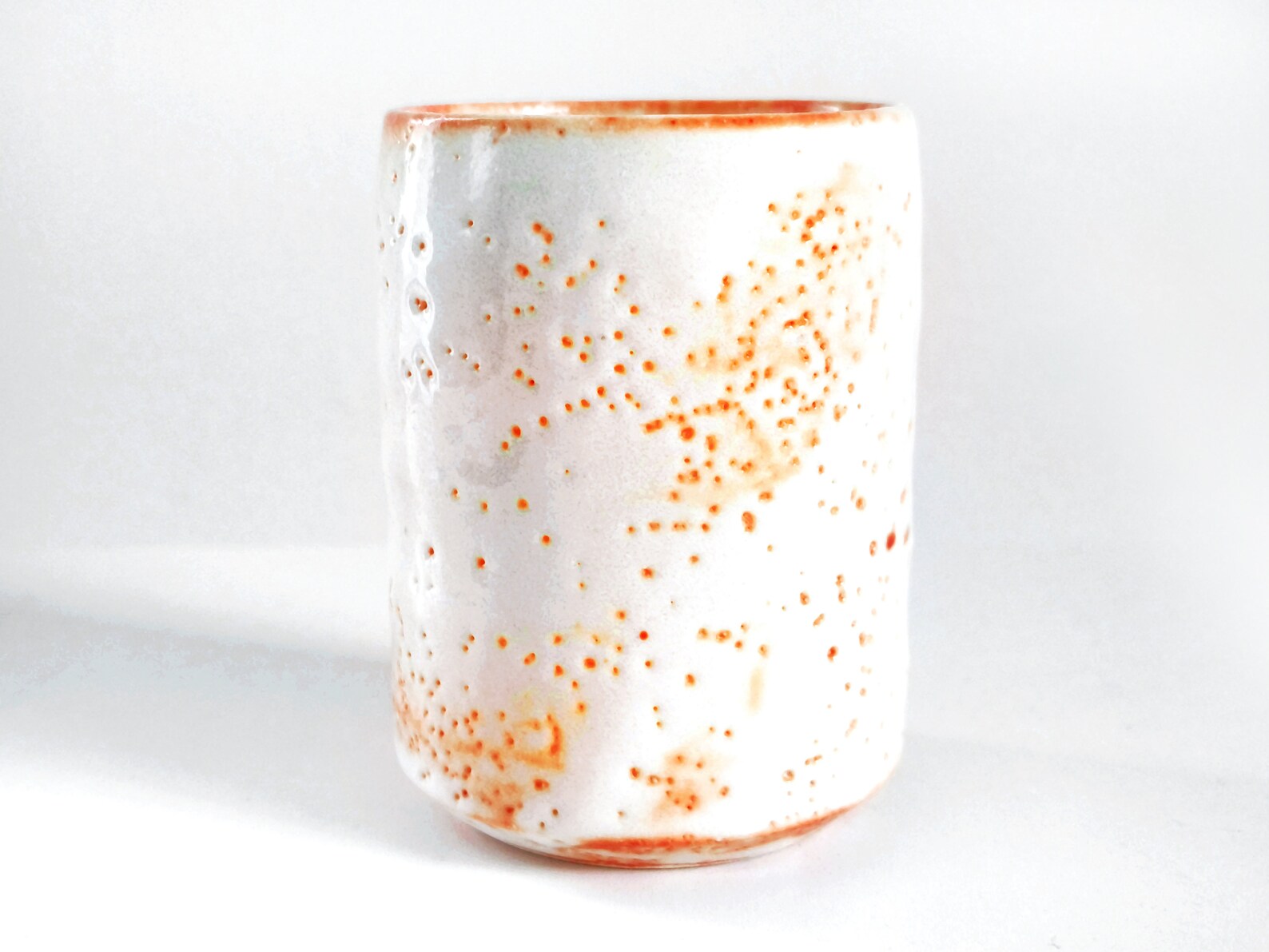 Stunning 153ml Japanese Shino Ware Tea Cup – Handcrafted Ceramic Masterpiece with Vibrant Orange & Red Accents