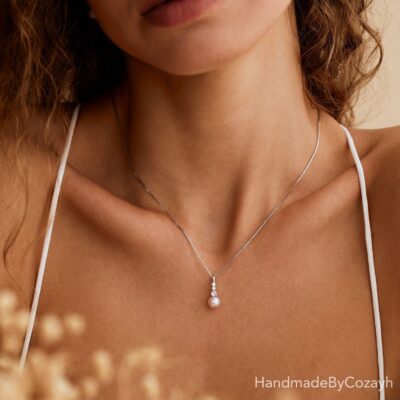 Stunning 925 Sterling Silver Pearl Necklace with Diamond – A Timeless Treasure for Bridesmaids & Weddings
