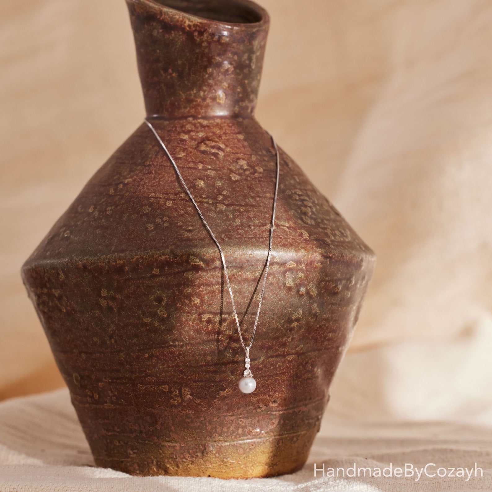- This exquisite necklace, fashioned from 925 sterling silver, showcases a lustrous freshwater pearl and a dazzling diamond accent. The adjustable chain fors a perfect fit, making it a versatile piece for any occasion. Whether you're searching for the perfect bridesmaid present or a sophisticated addition to your own jewellery box, this necklace offers timeless elegance and enduring quality. Its delicate design and sparkling details make it a truly special piece.