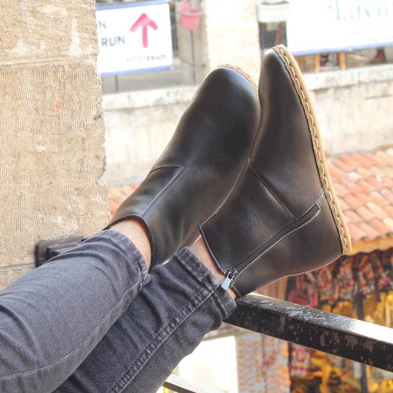 Men’s Black Zero Drop Ankle Boots – Barefoot Zip-Up Comfort with Rubber Sole