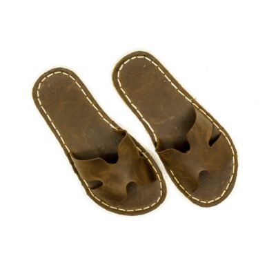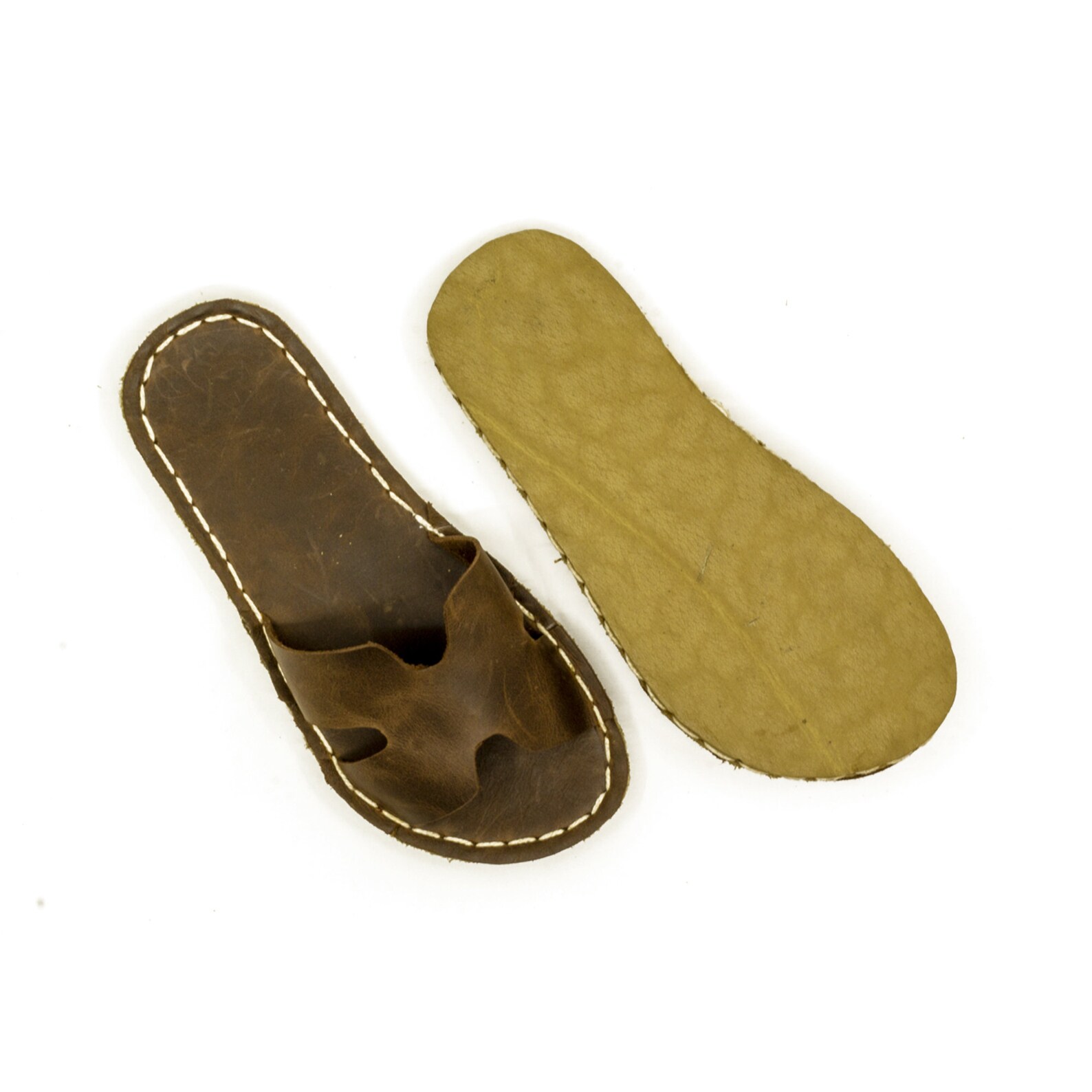 Men’s Brown Faux Leather Barefoot Slippers – Indoor Outdoor Comfort