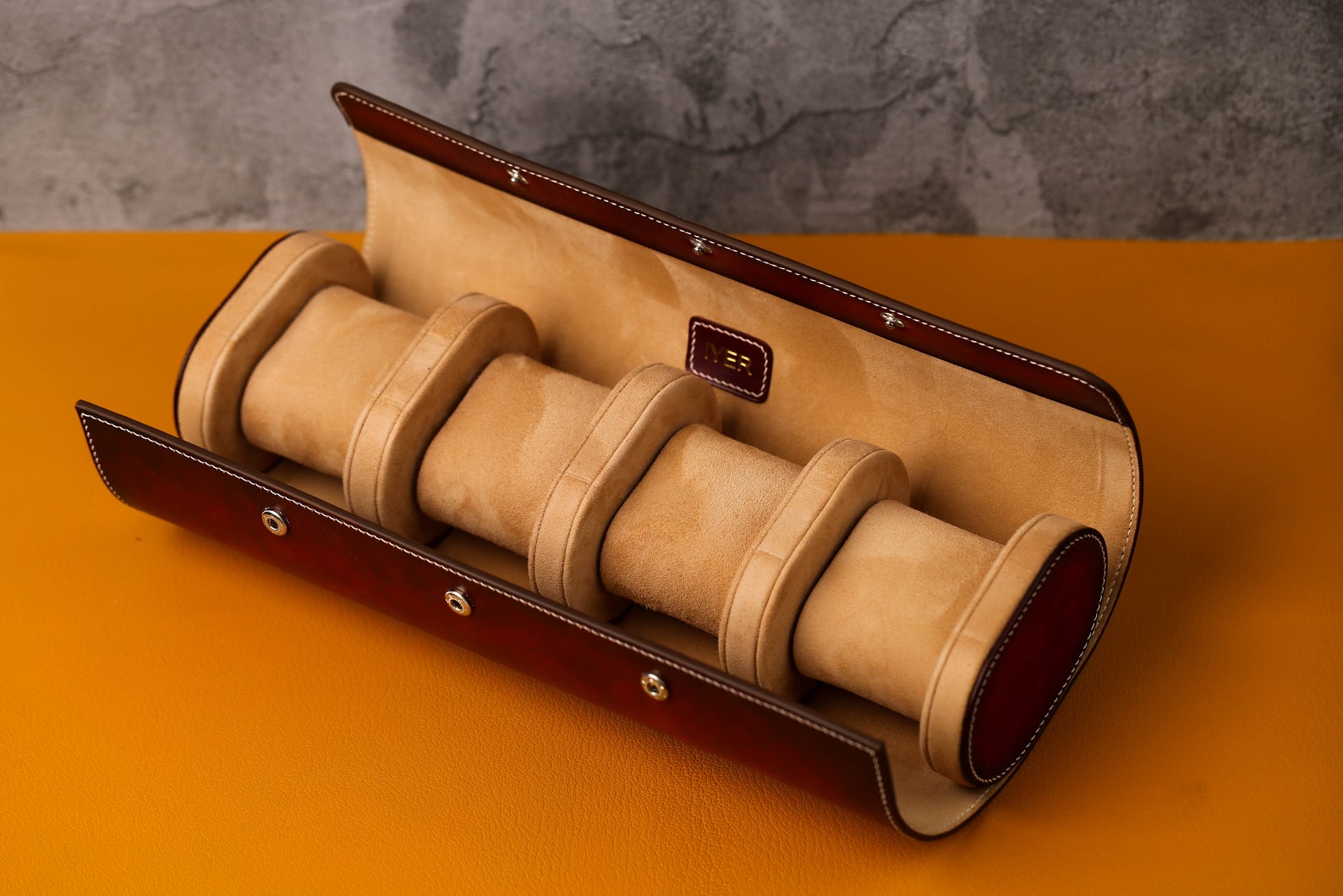 - Handcrafted from premium burgundy vegetable-tanned leather for exceptional durability and a luxurious feel. This watch roll offers superior protection and style.