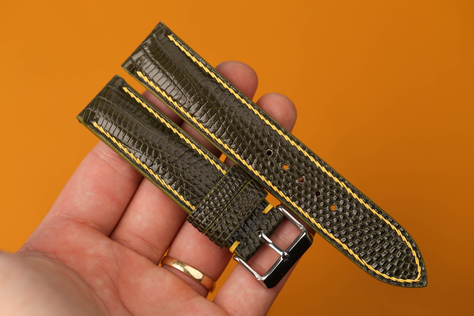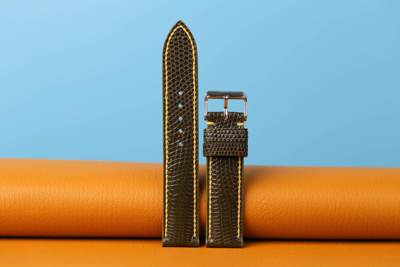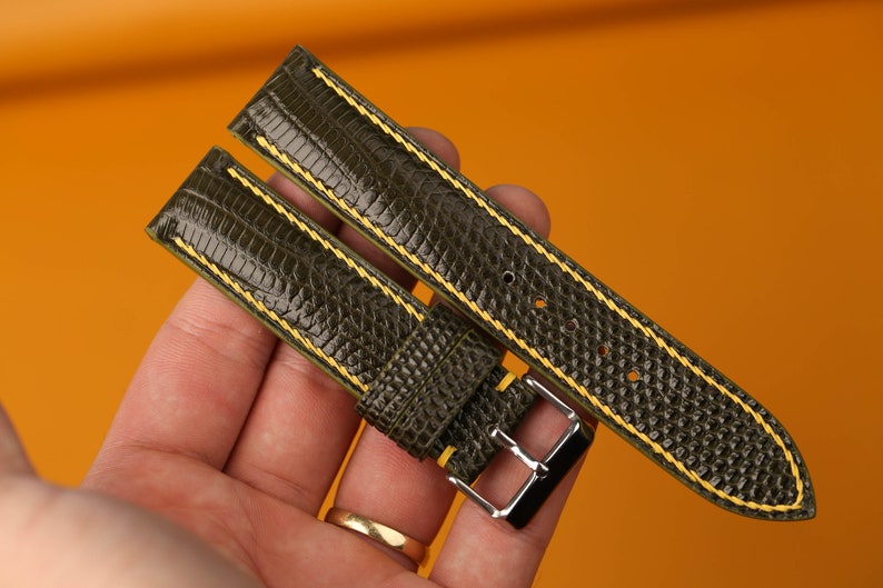 - Premium dark green leather watch strap, handcrafted for a luxurious and sophisticated look.