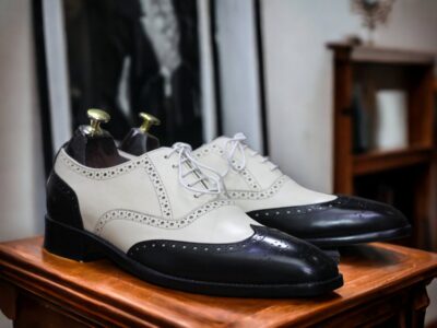 Handmade White Goodyear Welted Shoes Bespoke Style