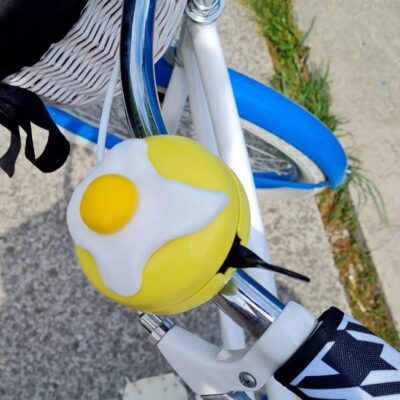 - Adds a bit of fun and personality to your bike, making it stand out from the crowd. This novelty bike bell is a great way to improve safety while cycling. The loud, clear sound fors you're heard on busy roads and cycle paths. Easy to attach and compatible with most bikes, this fried egg bell is a fun and practical accessory for any cyclist. Get yours today and add some sunshine to your ride! Perfect for kids and adults alike, this quirky bell is sure to turn heads and bring a smile to everyone's face.