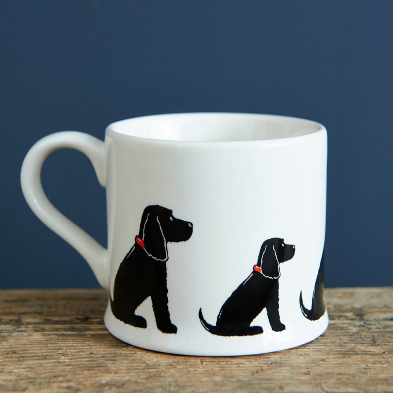 - A delightful Black Cocker Spaniel mug, showcasing a charming illustration of this much-loved breed. Perfect for any dog lover!