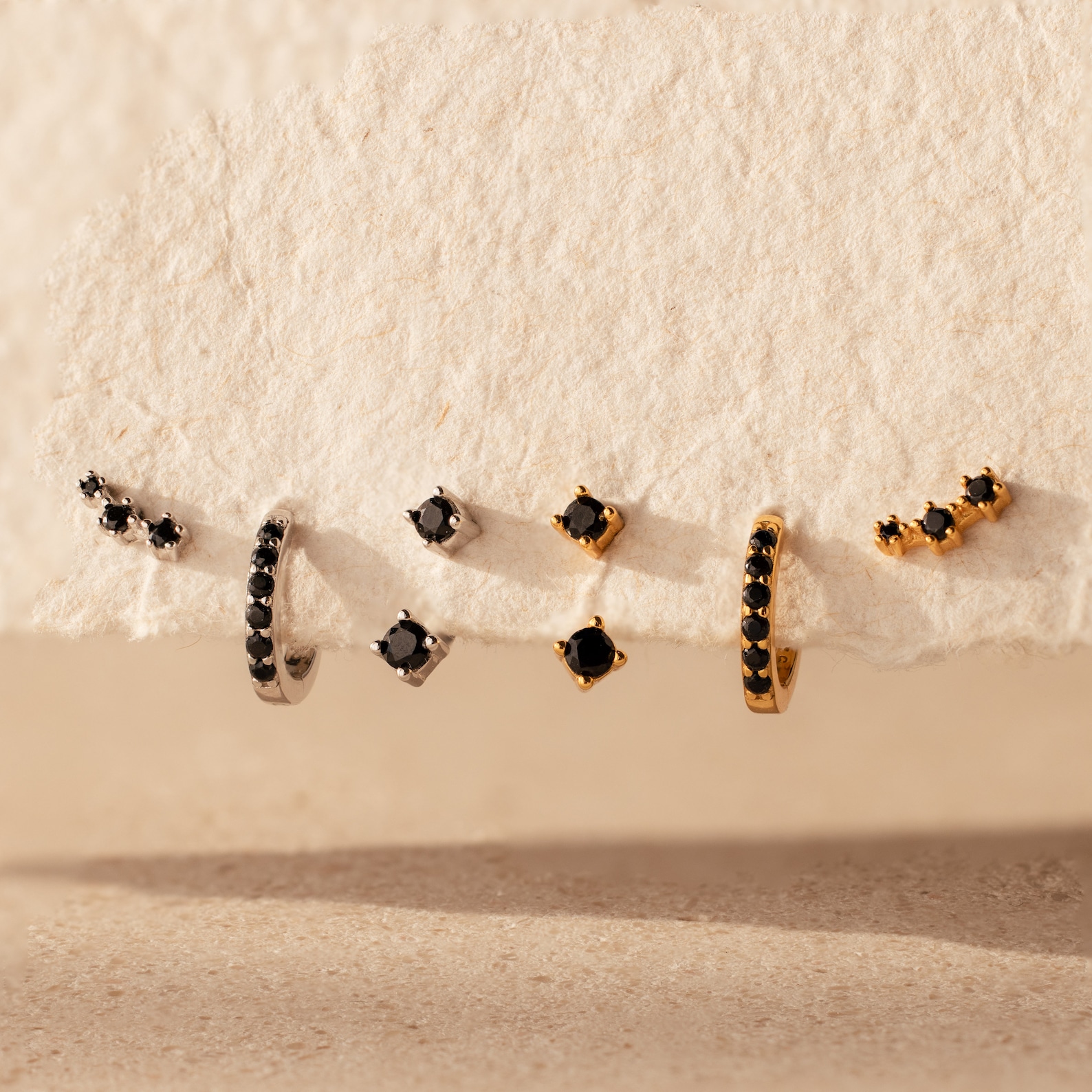 Black Diamond Earring Set – Pave Diamond Hoops & Ear Jackets by Caitlyn Minimalist
