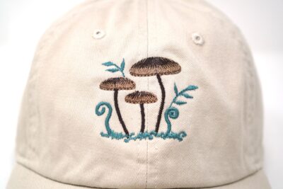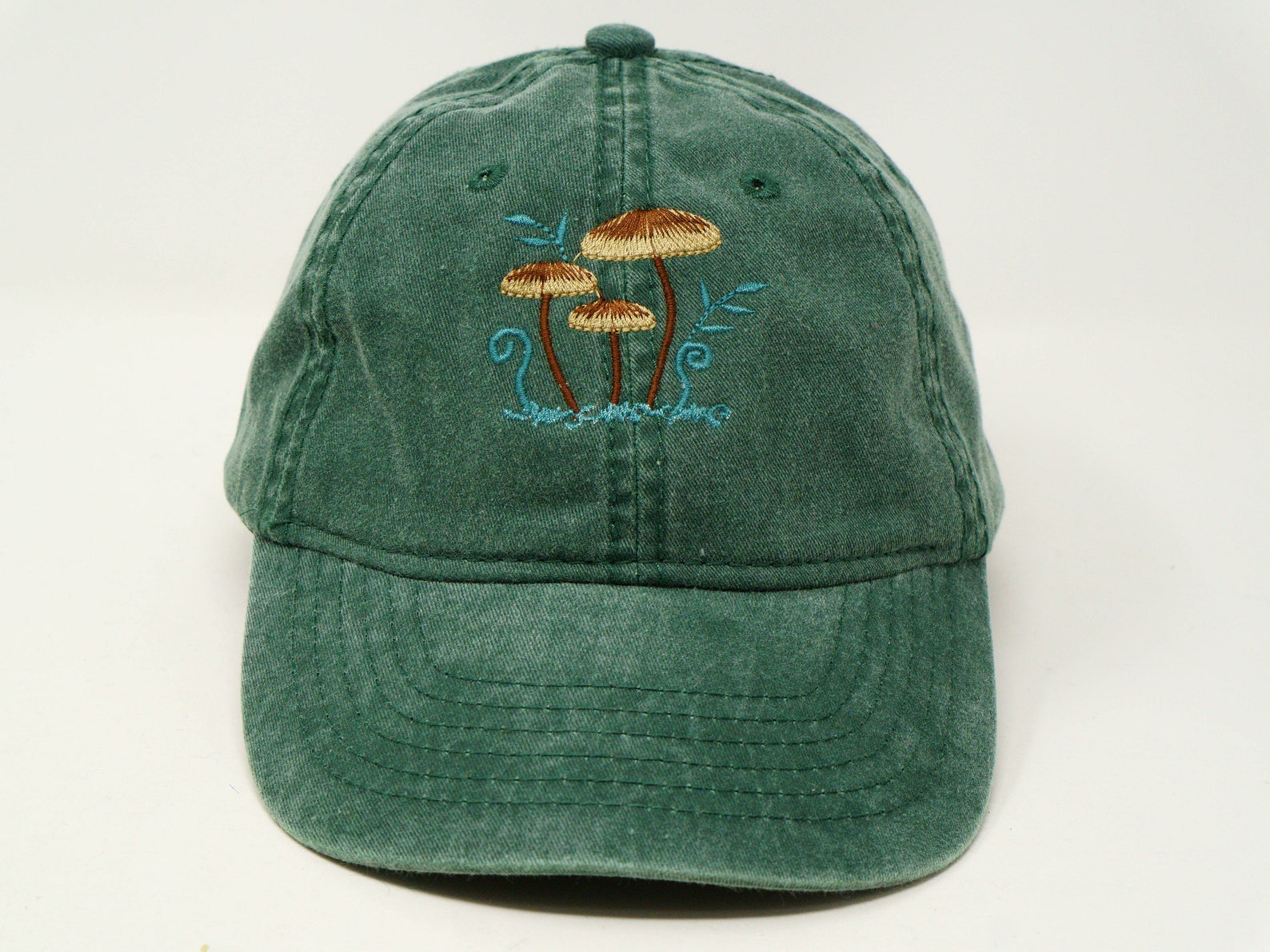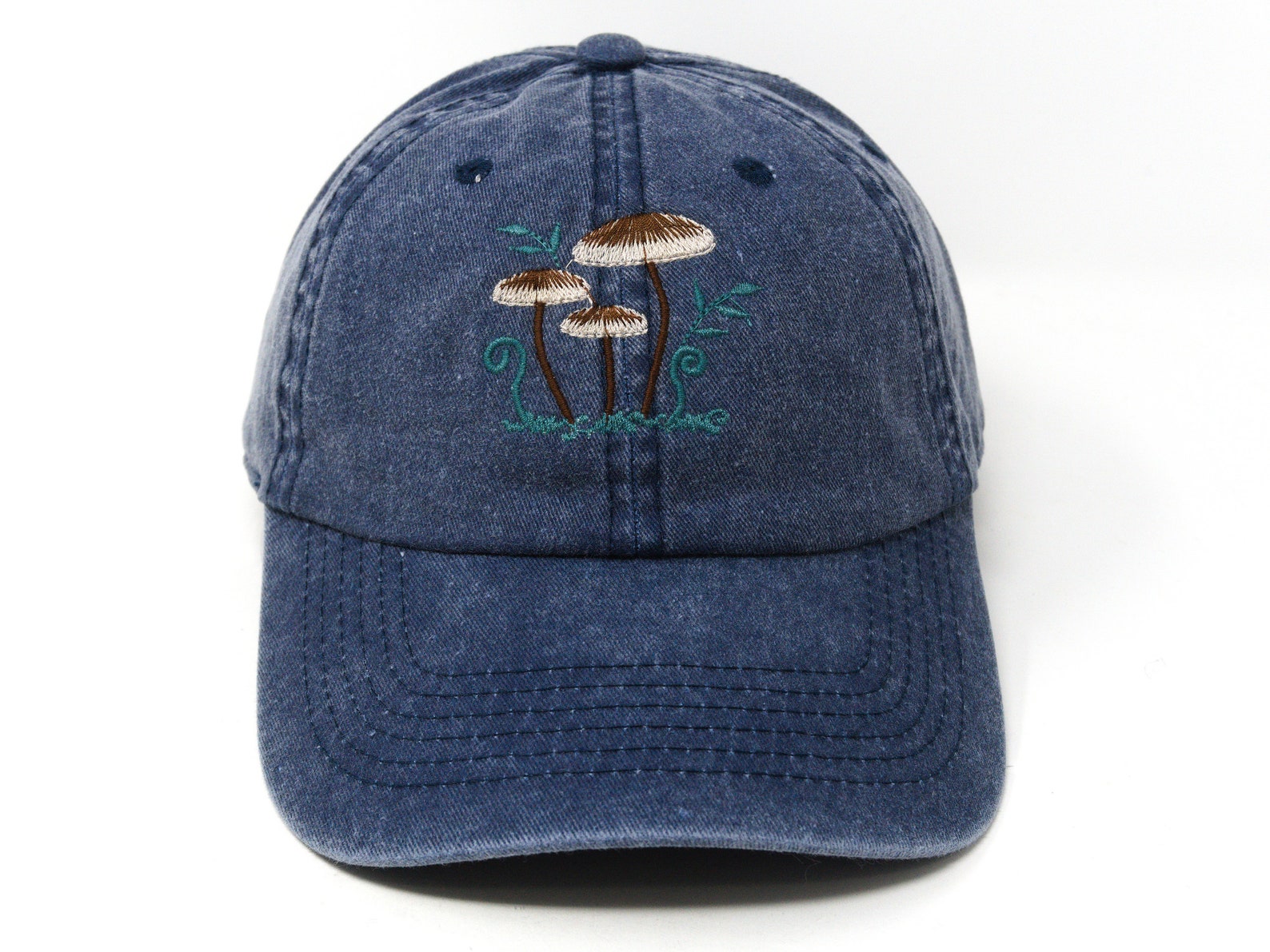 Embroidered Mushroom Family Baseball Cap, Washed Cotton, Curved Peak, Summer Hat