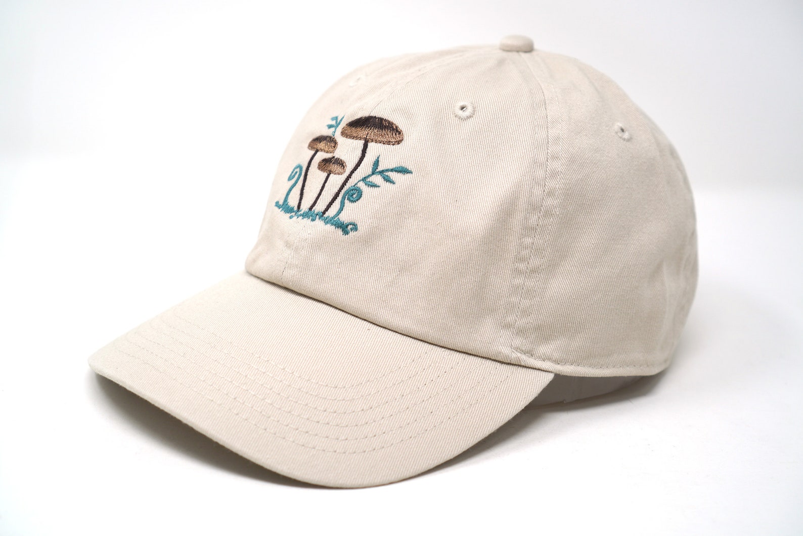 - This charming baseball cap features an embroidered brown mushroom family design, adding a playful touch to your summer wardrobe. Crafted from washed cotton, it offers a comfortable and breathable fit, perfect for warmer weather. The curved peak provides essential sun protection, while the adjustable strap fors a secure and customised fit for all. Whether you're off on an outdoor adventure, popping to the shops, or simply want to inject some fun into your everyday style, this cap is the ideal choice. A must-have accessory for adding a touch of personality to any outfit.