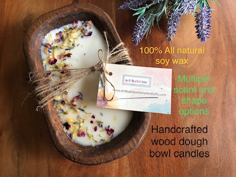 - Handcrafted from natural wood, each dough bowl candle is unique in its shape and texture.