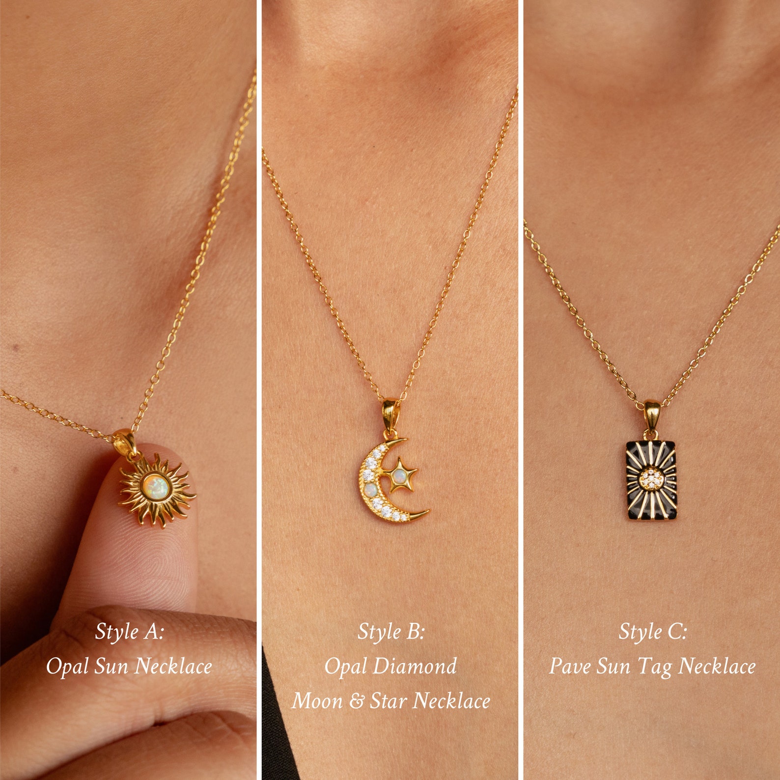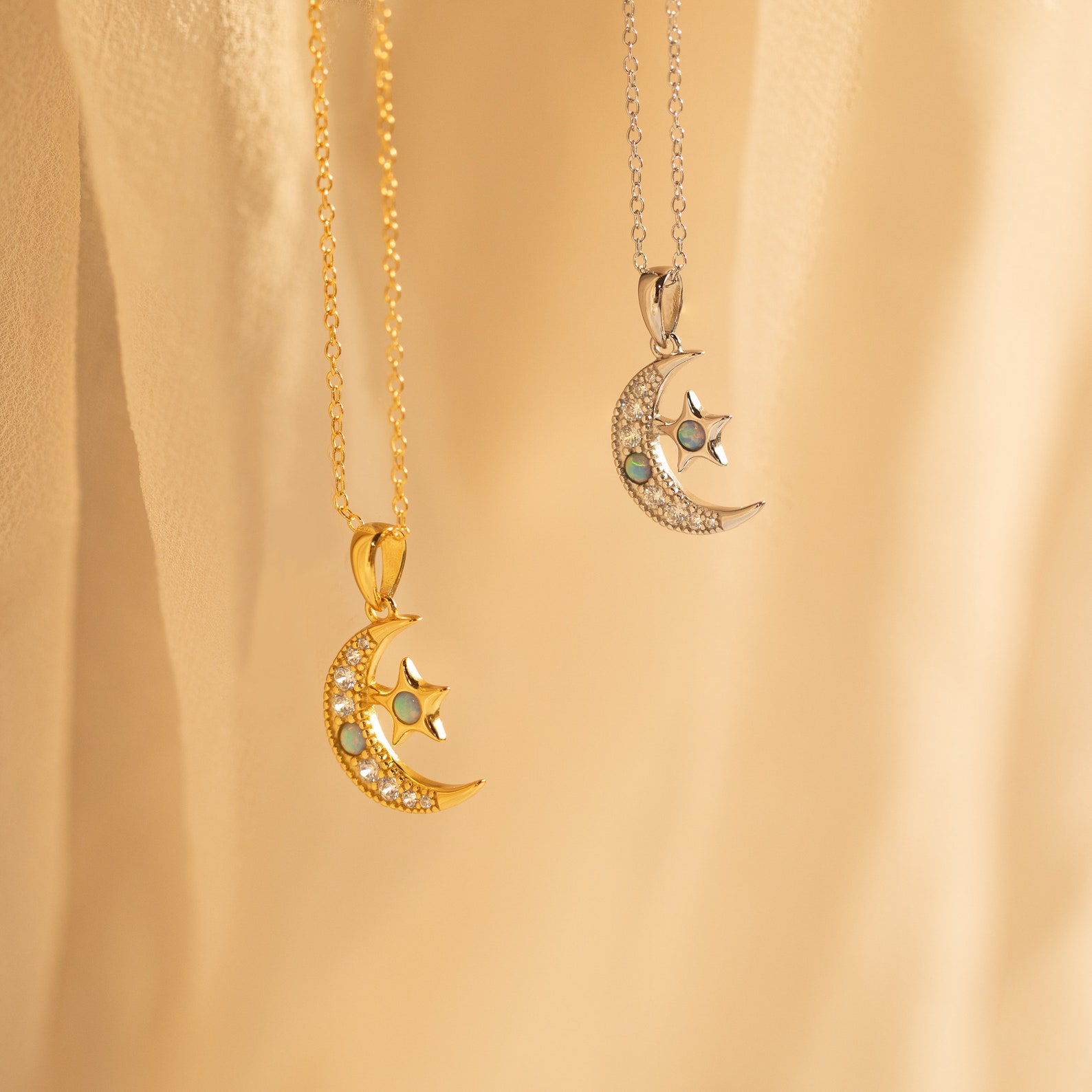 Caitlyn’s Minimalist Opal Jewellery Set: Celestial Pendant Necklace (British English)