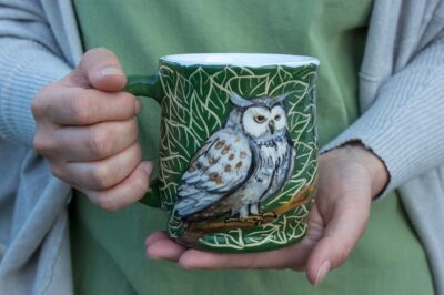 - A thoughtful and unique gift idea for any occasion. Treat yourself or a loved one! This delightful ceramic mug, showcasing a handcrafted owl design, is available in a range of sizes to suit your needs. Crafted from sustainable materials, it's not only durable but also kind to the planet. Whether you're enjoying a morning brew or a relaxing evening cuppa, this mug is the perfect companion. A charming and practical present for birthdays, Christmas, or just because!
