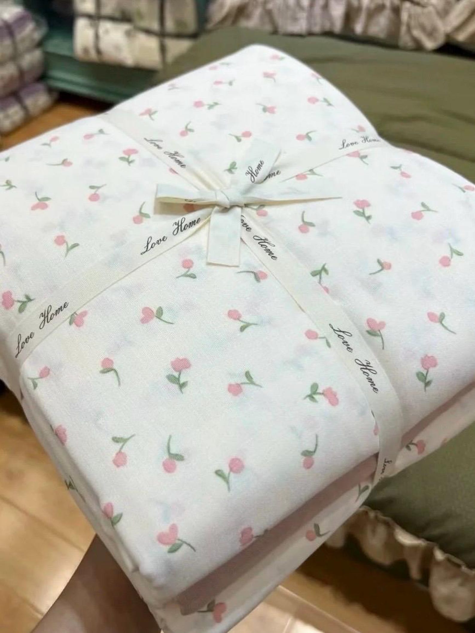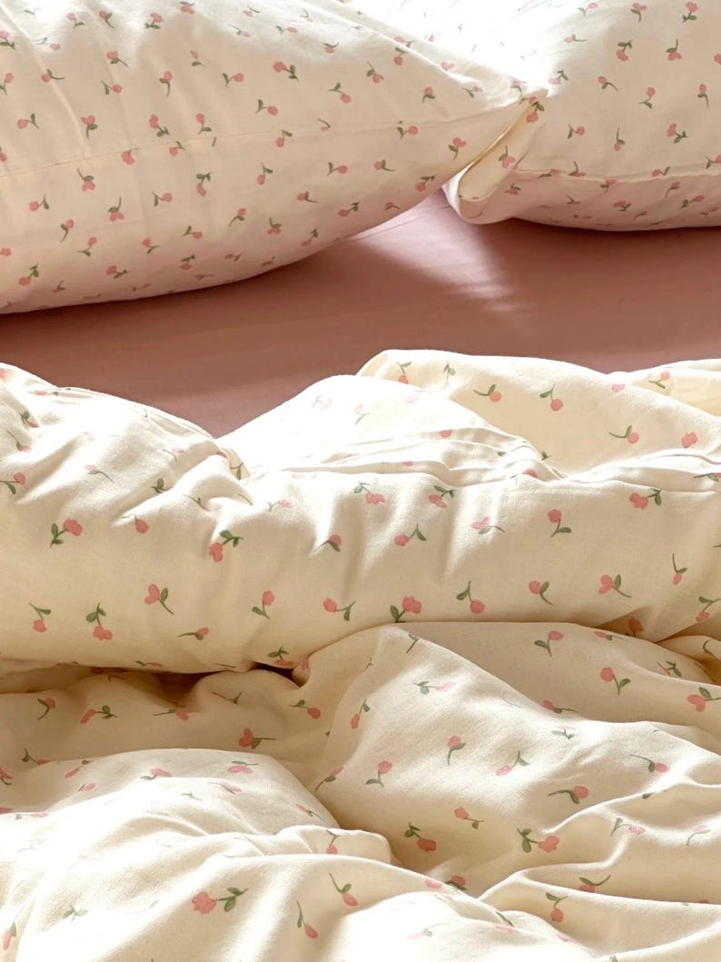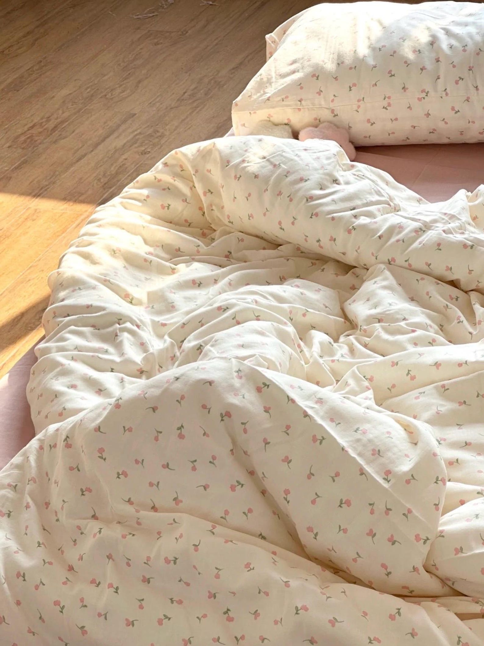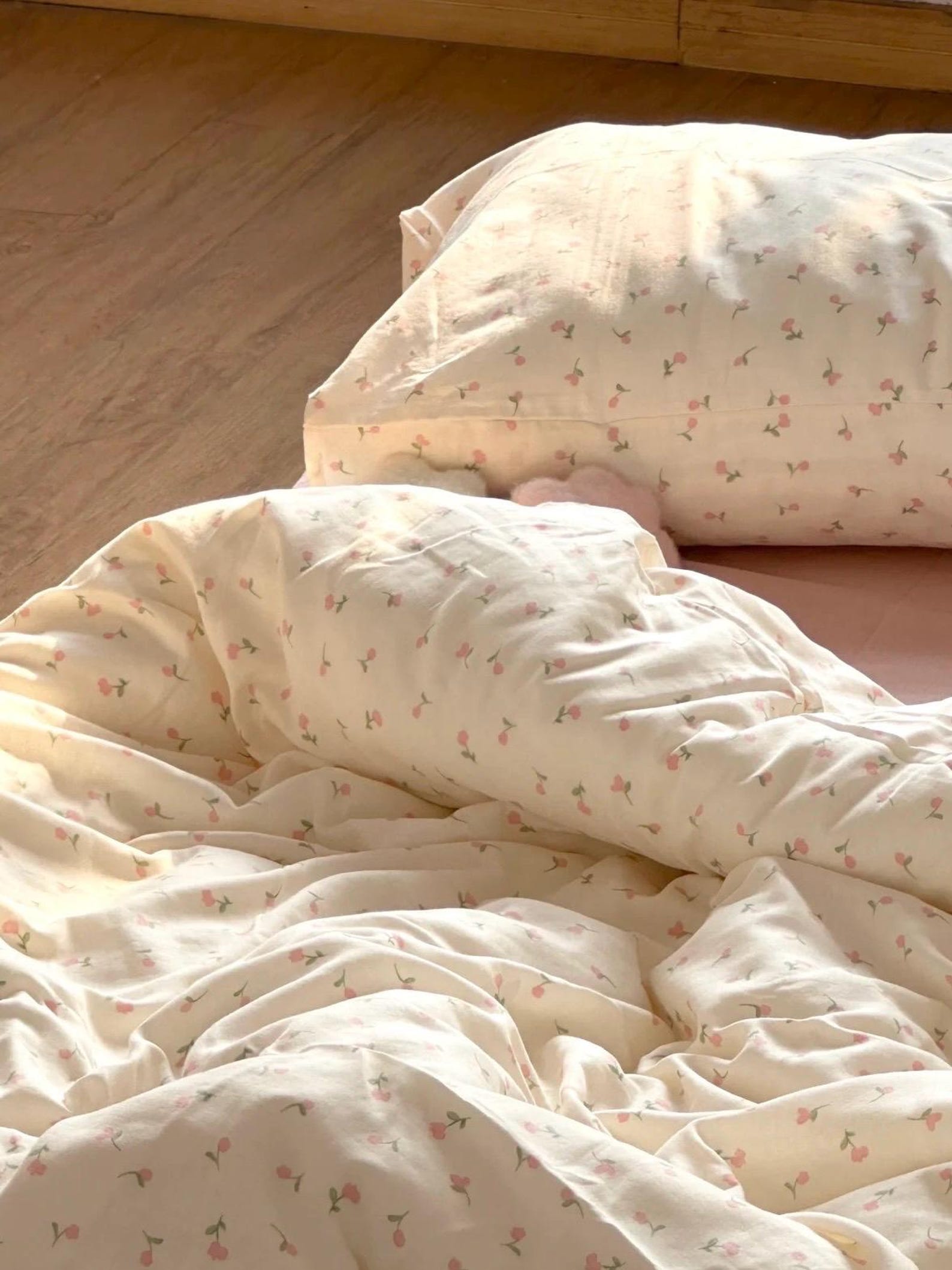 Coquette Pink Floral Duvet Cover Set: Double Gauze Cotton for a Cosy Bedroom