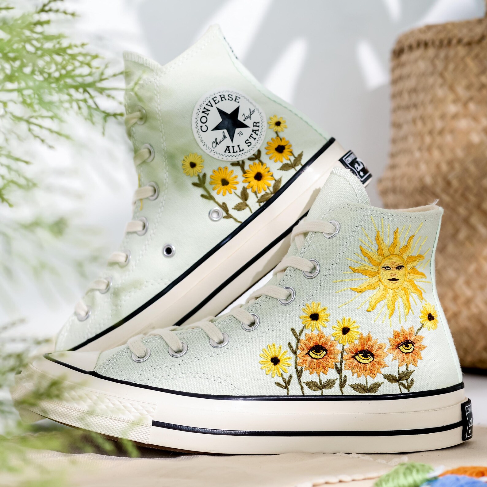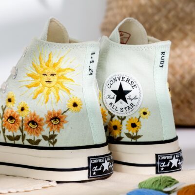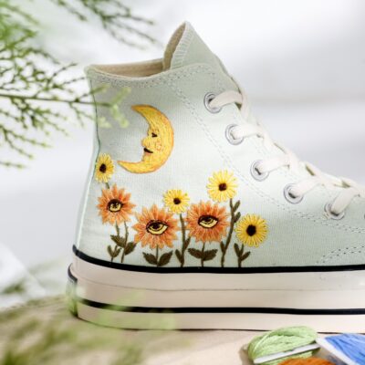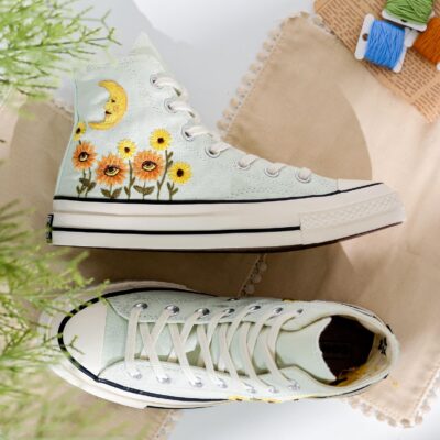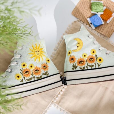 Eye-Catching Custom Converse Embroidered Evil Eye Sunflowers: A Trendy Statement