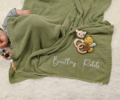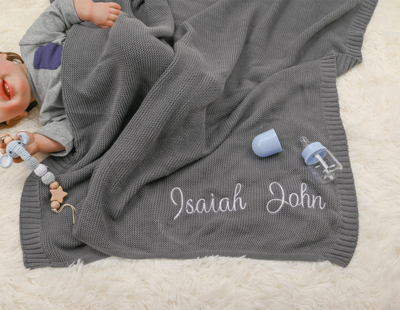 The Perfect item for Baby Showers and New Arrivals: Searching for the perfect baby shower item Look no further! Our personalised knitted blanket is a thoughtful and practical present that any new parent will appreciate. It's a unique and memorable way to celebrate the arrival of a new baby and create a lasting keepsake that will be cherished for generations. Give the item of warmth, comfort, and personalisation with our custom knitted blanket.