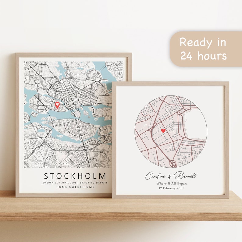 - Create a bespoke piece of wall art to remember a special place or moment in time. Perfect for housewarmings, engagements, or simply to add a personal touch to your home. Choose your location, colour scheme, and font to design a truly one-of-a-kind print. This digital download allows you to print at home or at your local print shop, giving you complete control over the final product. A thoughtful and lasting gift for loved ones.