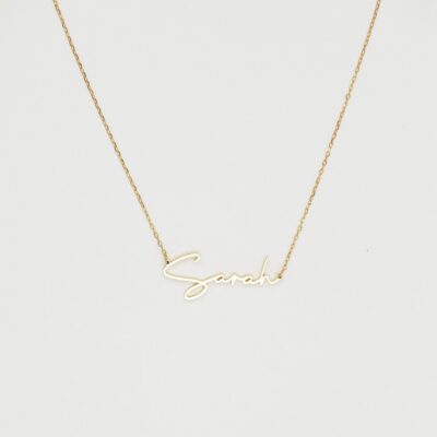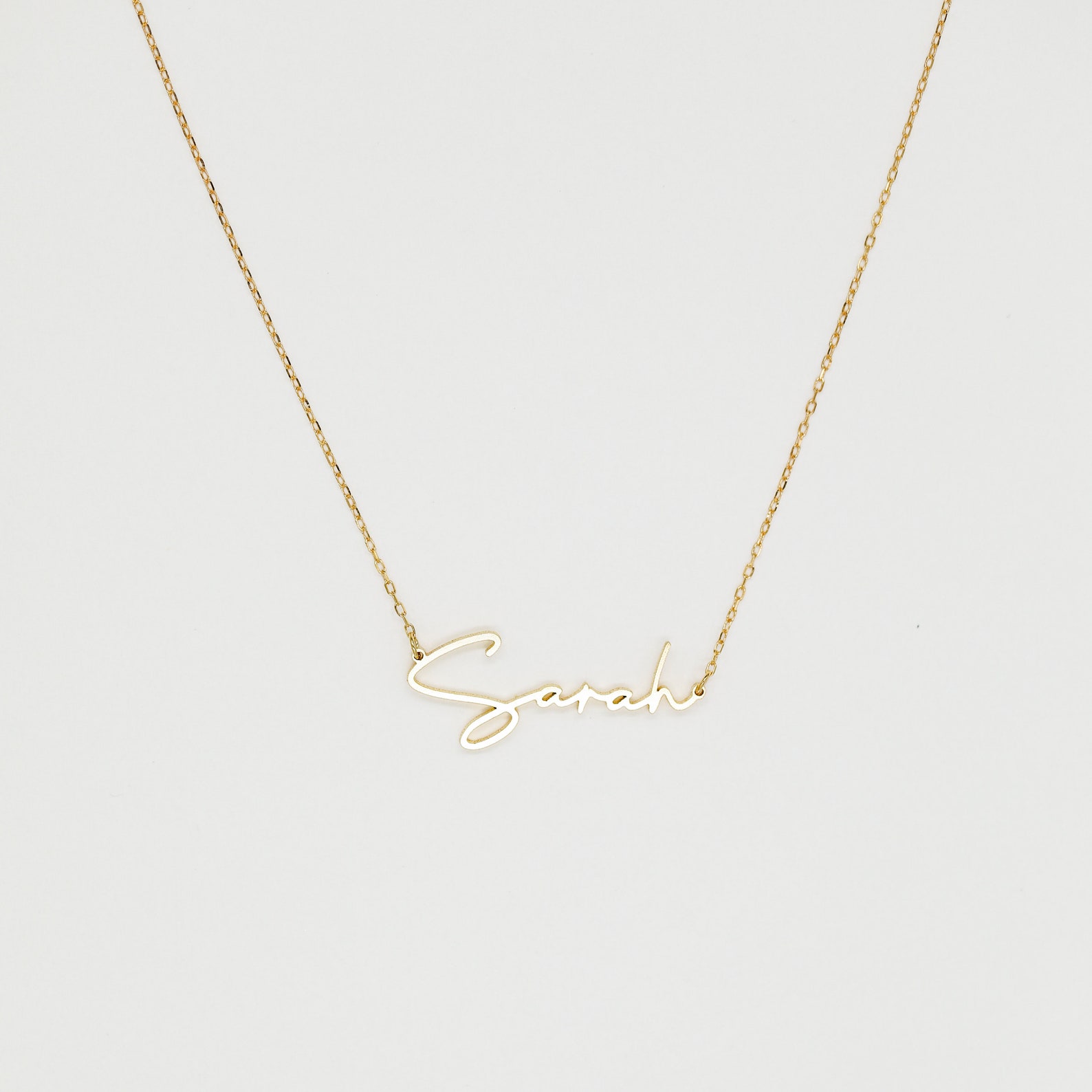 - Each necklace is meticulously crafted to order, help a unique and meaningful addition to your jewellery collection. This personalised name necklace offers a touch of understated glamour. The sleek, minimalist design makes it perfect for everyday wear or special occasions. Select a radiant gold finish to perfectly match your style. A truly special and bespoke gift, this necklace is sure to be treasured for years to come. Show someone you care with this unique and elegant piece of jewellery.