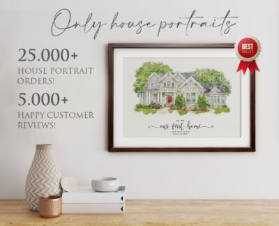 - Printed on high-quality paper, these portraits are ready to be framed and displayed, adding a touch of warmth and nostalgia to any space. A delightful addition to any home, these custom portraits make ideal presents for new homeowners, estate agents looking for closing gifts, or simply as a special treat for yourself. Celebrate your bricks and mortar with a beautiful, hand-painted watercolour, capturing every detail of your beloved property. A truly unique and personal piece of art.