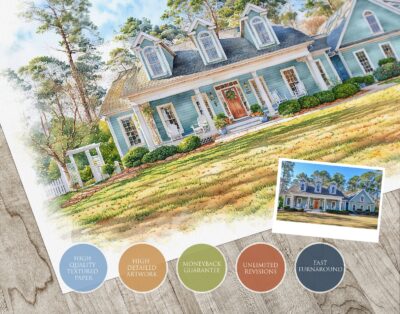 - Our skilled artists meticulously recreate your house's details, preserving its character and personality in a timeless work of art.