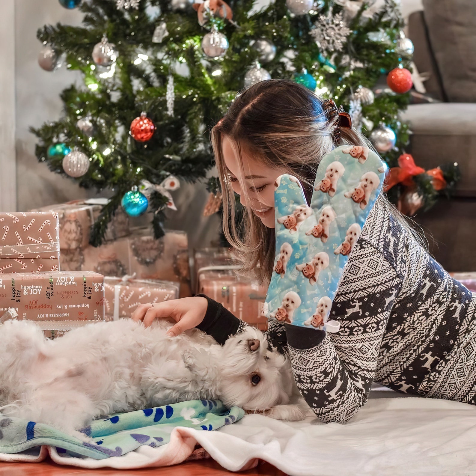 - Create a personalised oven glove featuring your beloved pooch! Simply upload a clear photo and we'll create a unique design. Made from hard-wearing materials, this oven glove is perfect for protecting your hands while adding a touch of personality to your kitchen. A wonderful gift for dog owners, ideal for Christmas, birthdays, or just because. Add a bit of fun to your baking and cooking with this charming and practical accessory. A truly special way to celebrate your four-legged friend.