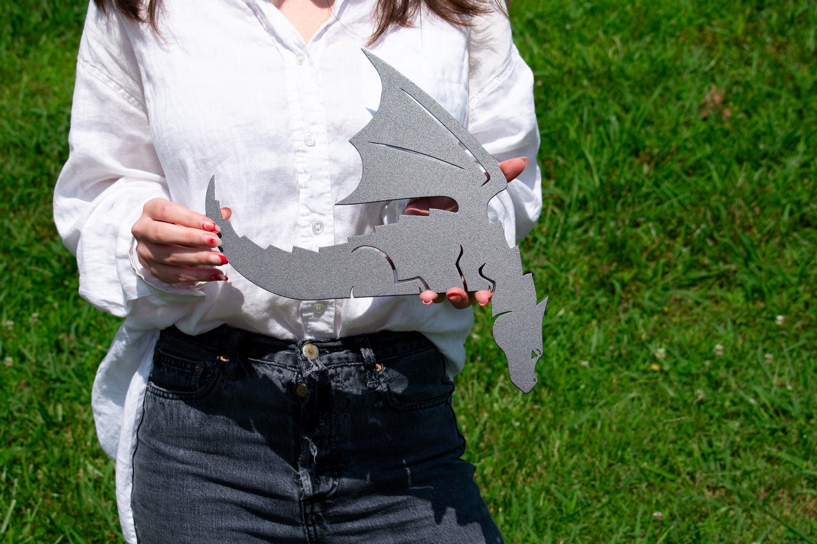 Add a touch of mythical charm to your home with this Enchanting Dragon decoration. Featuring an intricate metal dragon design, this piece brings a fantastical element to any room. Crafted from durable metal, it's built to last and withstand daily wear and tear. Easy to install with the included mounting hardware, it's perfect for adding a whimsical touch to children's bedrooms, playrooms, or any space that needs a bit of magic. This unique dragon decoration makes a thoughtful gift for dragon enthusiasts and anyone who appreciates a touch of fantasy in their dcor. Bring the legend to life with this captivating piece!