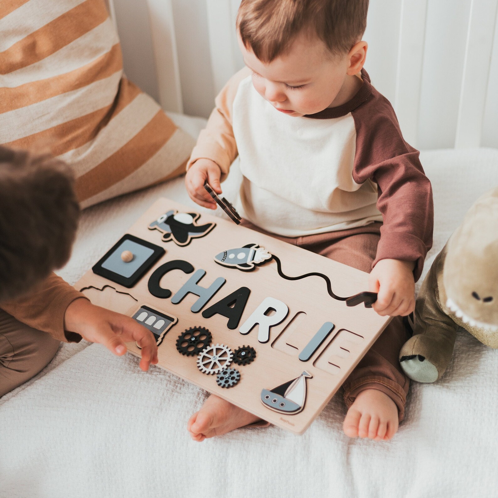Custom Name Puzzle for a Unique Touch: Make it extra special with a personalised name puzzle integrated into the busy board. This thoughtful detail adds a personal touch, making it a cherished keepsake that she'll adore for years to come. The puzzle pieces are perfectly sized for little hands, promoting dexterity and cognitive development.