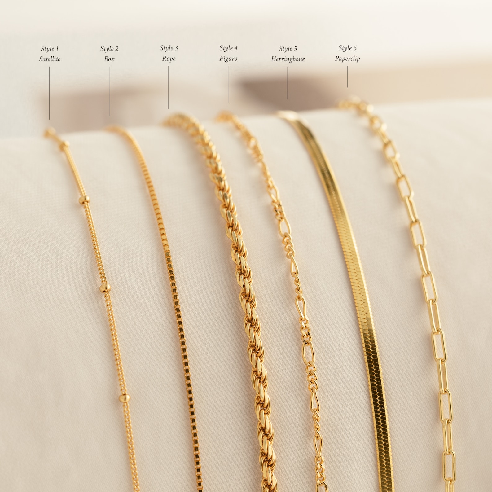 - Exquisite and stylish bracelet chains from Caitlyn, available in a range of designs including Figaro, Box, Herringbone, and Rope.