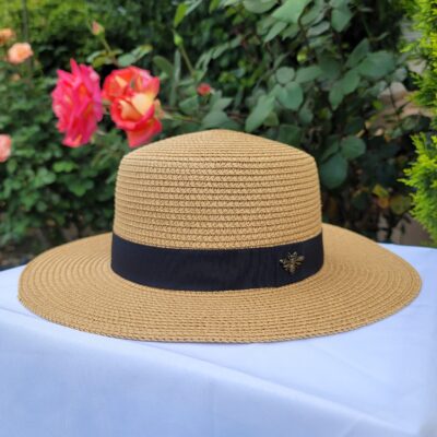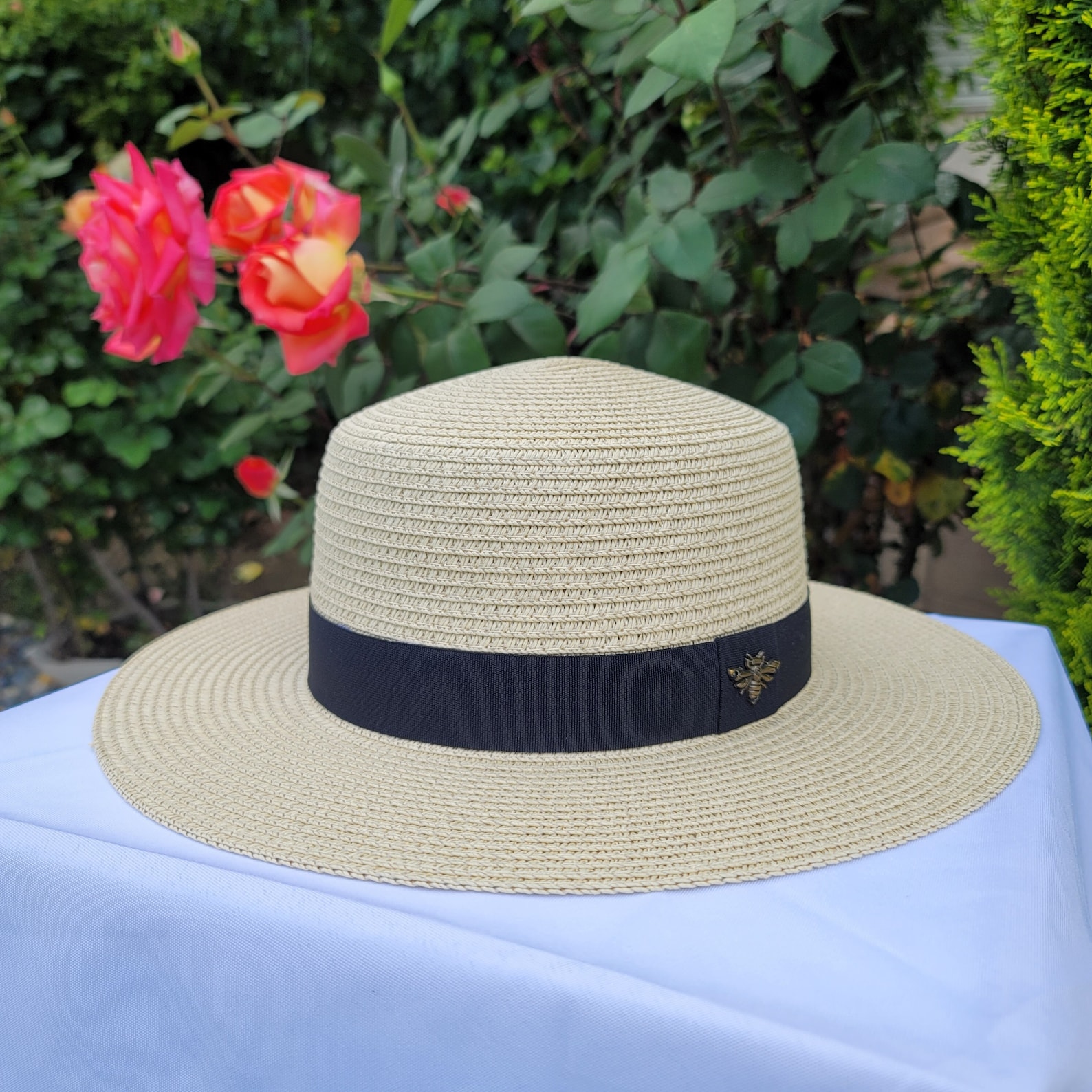 - This stylish straw fedora is the ideal finishing touch to your summer wardrobe. The intricate bee detailing adds a unique and sophisticated element, making it a standout piece. Whether you're strolling along the coast or attending a sophisticated garden party, this hat will keep you looking chic and feeling comfortable. The wide brim provides ample shade, protecting you from the sun's rays, while the lightweight straw help breathability. A must-have accessory for any fashion-conscious individual.