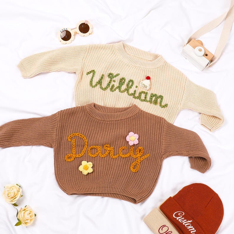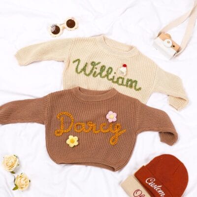 Personalised Baby Name Jumper – Custom Embroidered Knit for Toddlers | Unique Baby Shower Gift