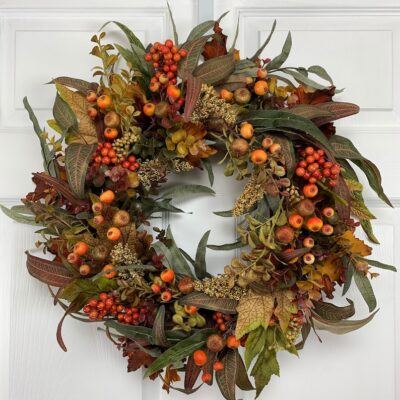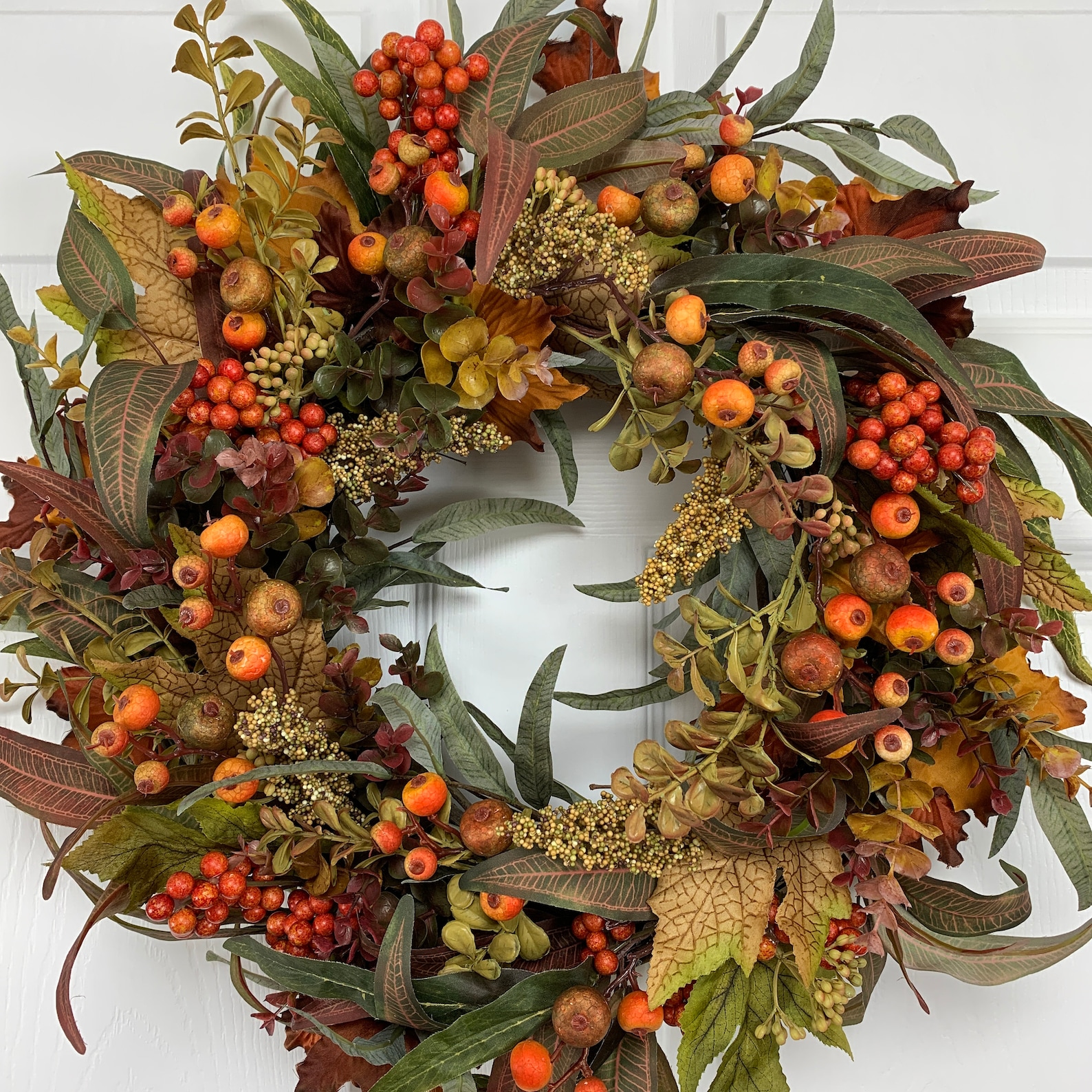- This vibrant wreath is perfect for adding a touch of autumnal charm to your home. Its realistic design and durable construction make it a long-lasting and eye-catching decoration.