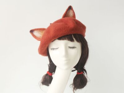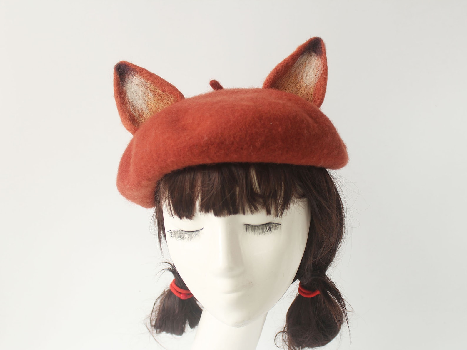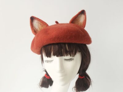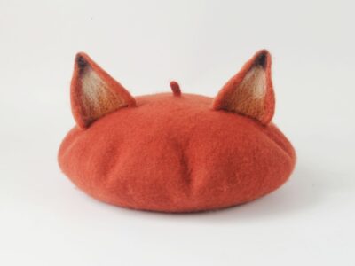 Charming Fox Beret – Handcrafted Wool Felt Beret with Playful Fox Ears