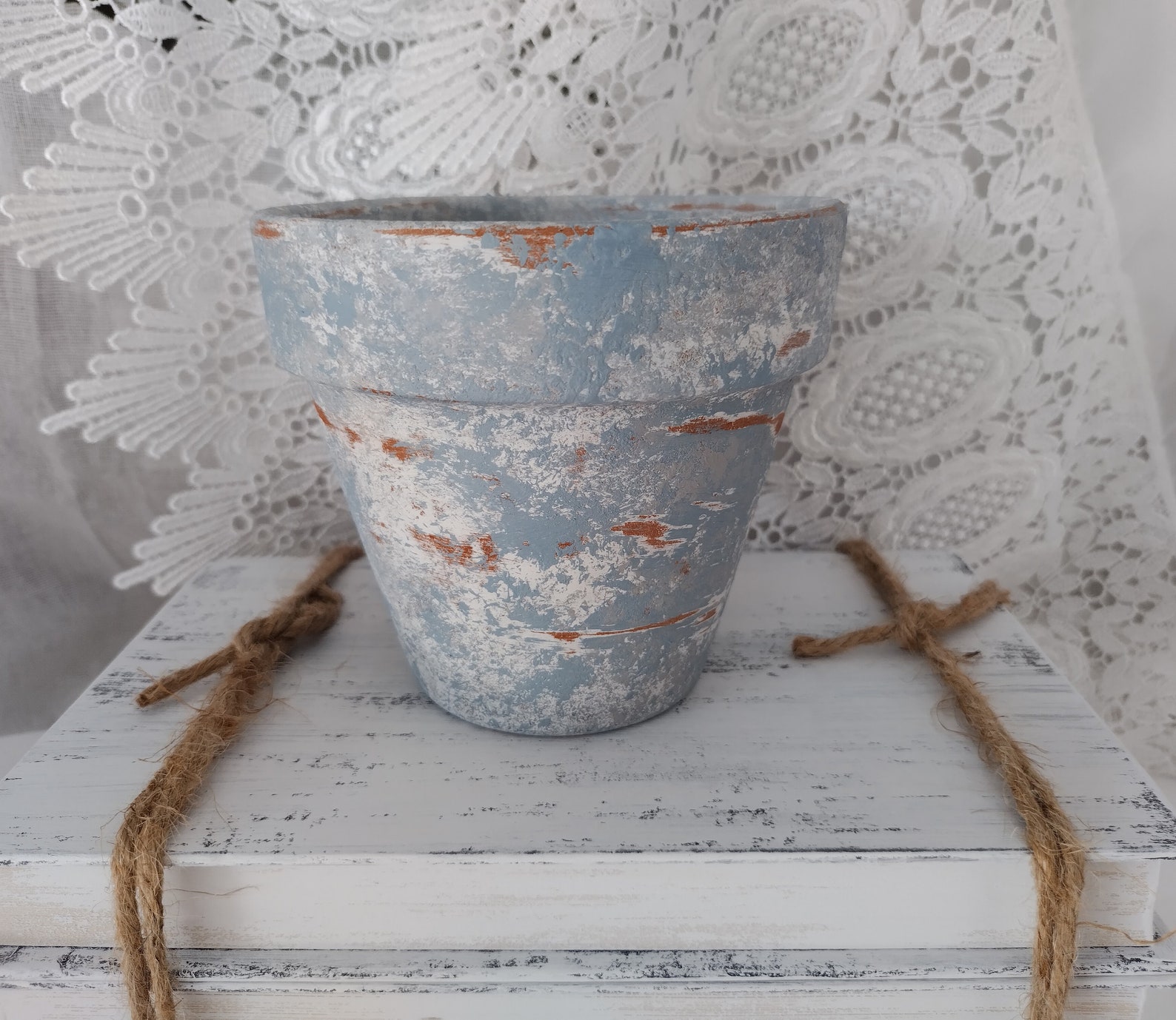 - French Country-inspired planter with a distressed, aged appearance for a touch of vintage elegance.