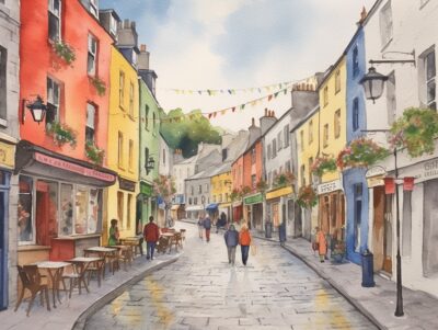 Charming Galway Cityscape Watercolour Print: Quay Street, Ireland