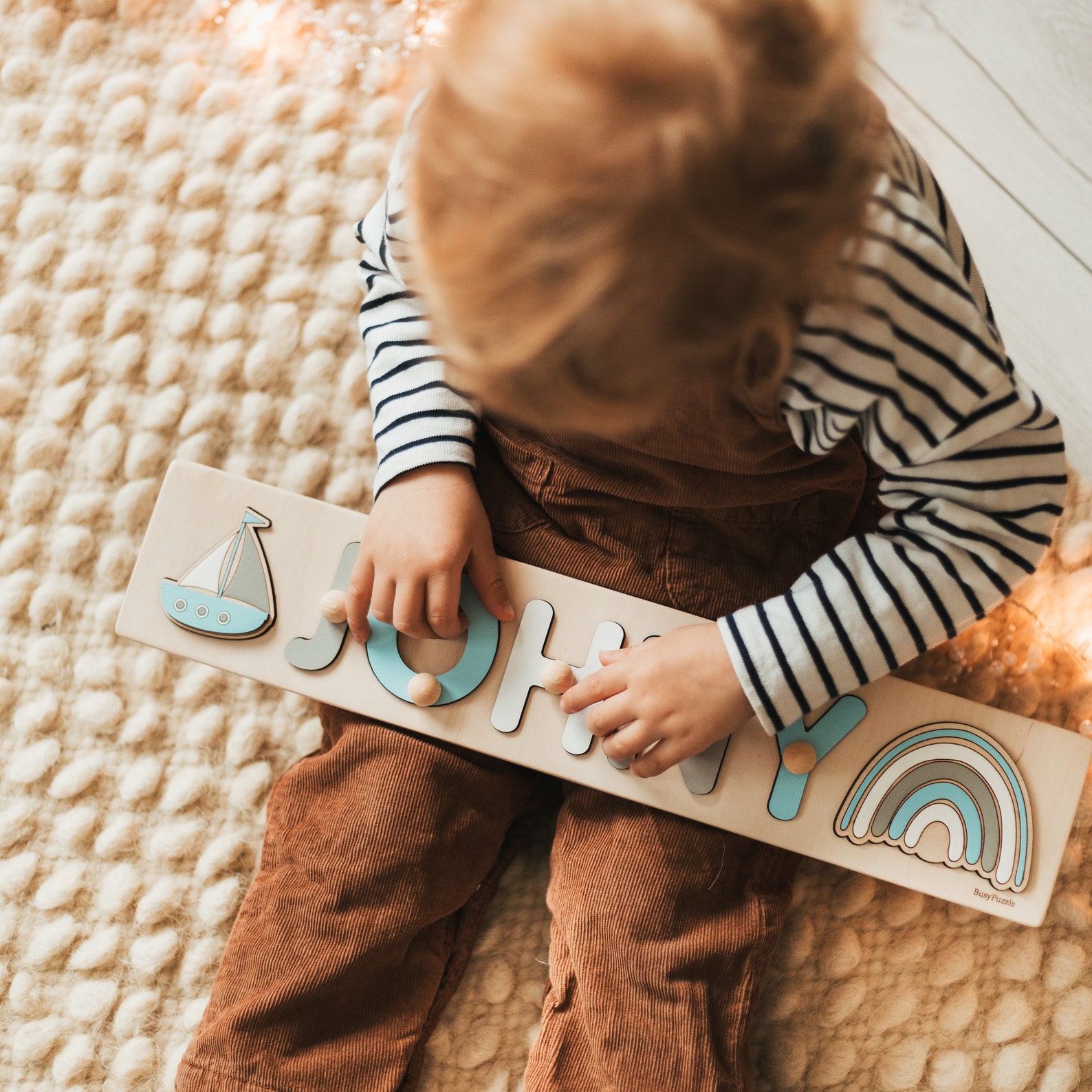 Personalised Rainbow Name Puzzle Custom Wooden Toy for 1st, 2nd, 3rd Birthday Unique Baby Gift