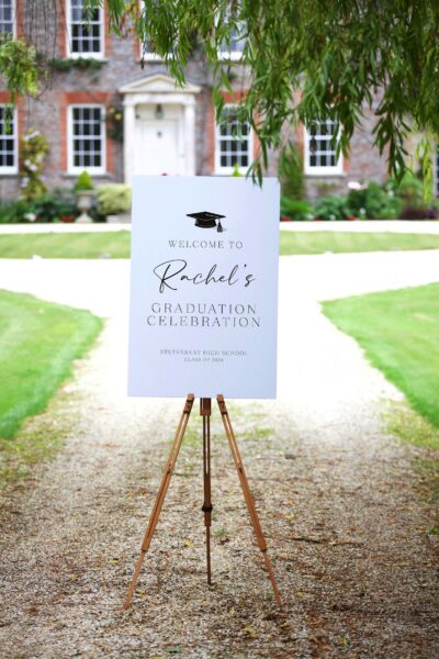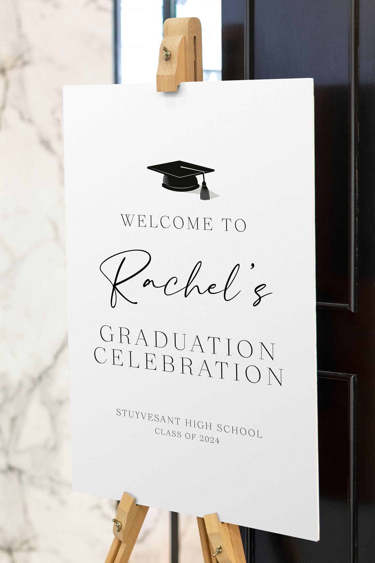 - Give your graduate a proper British celebration with this customisable welcome sign. Personalise it with their name, year of graduation and school colours. Choose from a variety of designs to suit their personality. Made from durable, high-quality materials, this sign will last for years. A unique and meaningful way to commemorate their special day and welcome guests to the party. Make your graduate feel extra special with this personalised touch.