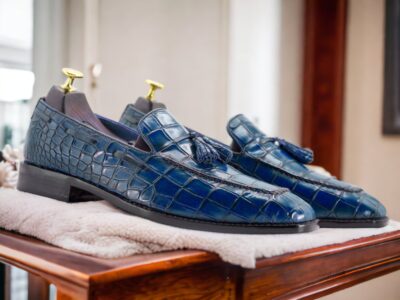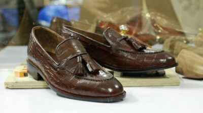 Exotic Alligator Texture: Elevate your style with these handcrafted loafers featuring a luxurious brown alligator texture, offering a sophisticated and distinctive look. The intricate detailing mimics genuine alligator skin, adding a touch of opulence to your footwear collection without using real animal skin.