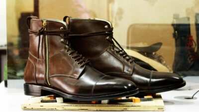 Men’s Handmade Brown Leather Boots, Cap Toe, Side Zip – UK