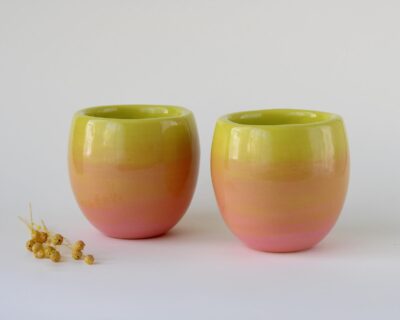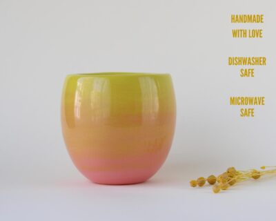 Exquisitely Crafted Pink Chartreuse Ombr Ceramic Espresso Cup: A Symphony of Hues