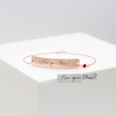 - Immortalise your loved one's actual handwriting on this delicate bar bracelet, creating a timeless keepsake.
