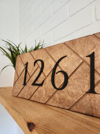 - Elevate your home's kerb appeal with a stylish herringbone pattern address sign.