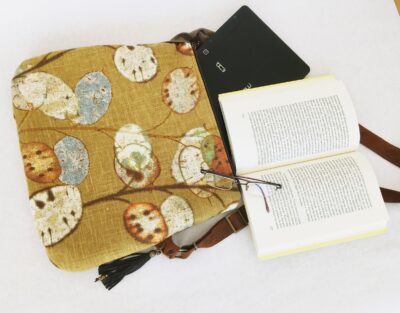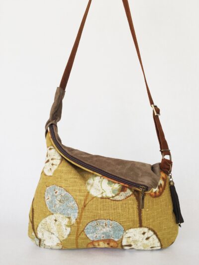 Rustic Linen Print Hobo Crossbody Bag: Mustard Yellow Bohemian Style