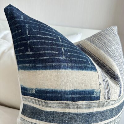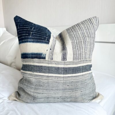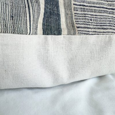 Vintage Indigo Hemp Cushion Cover, Hand Block Printed Bohemian Textile
