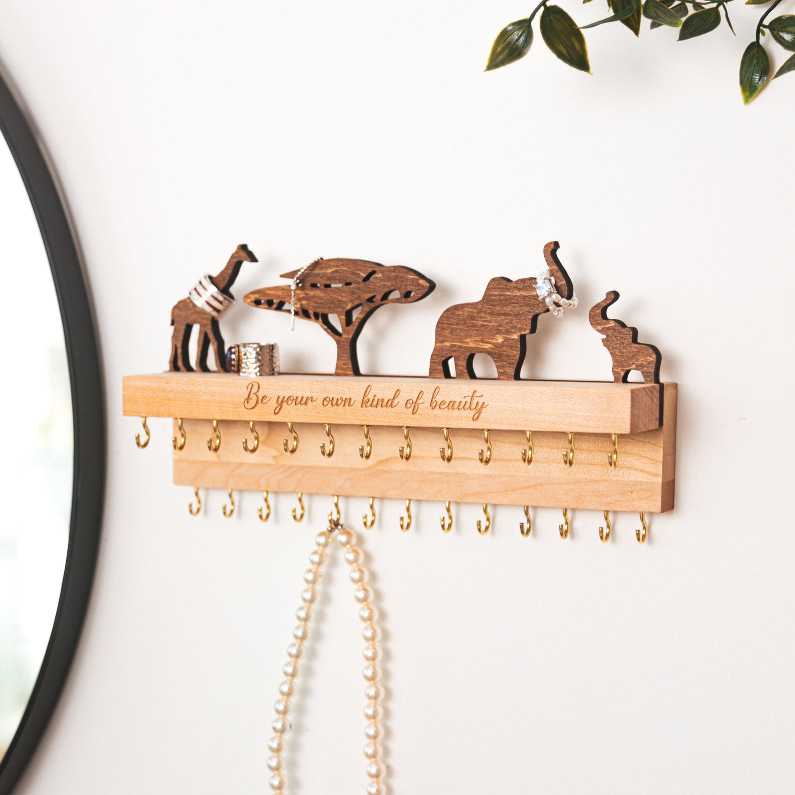 Cherish Your Treasures: Showcase your beloved necklaces, earrings, and other precious keepsakes with our Personalised Jewellery Organiser Shelf. This custom-crafted piece transforms cluttered chaos into an elegant display, adding a touch of personalised charm to your dressing table, chest of drawers, or wall.