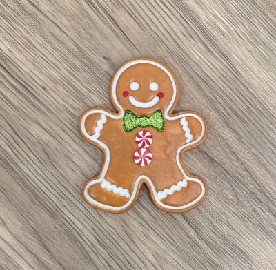 - A delightfully festive gingerbread man biscuit, perfect for Christmas celebrations.