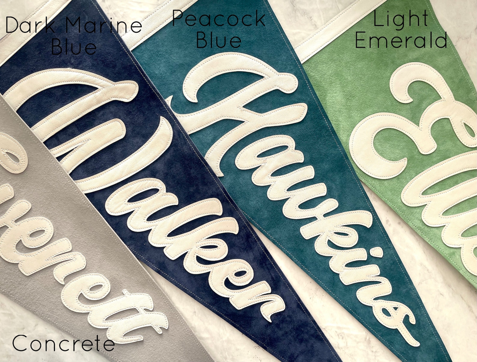 - Personalise your space with a unique, handcrafted pennant flag banner, crafted from genuine suede and leather.