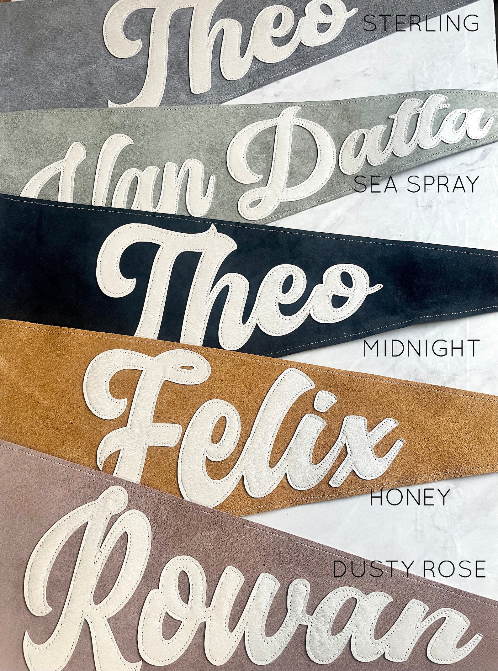 Bespoke Leather & Suede Pennant Banner: Craft Your Own Statement with Custom Text