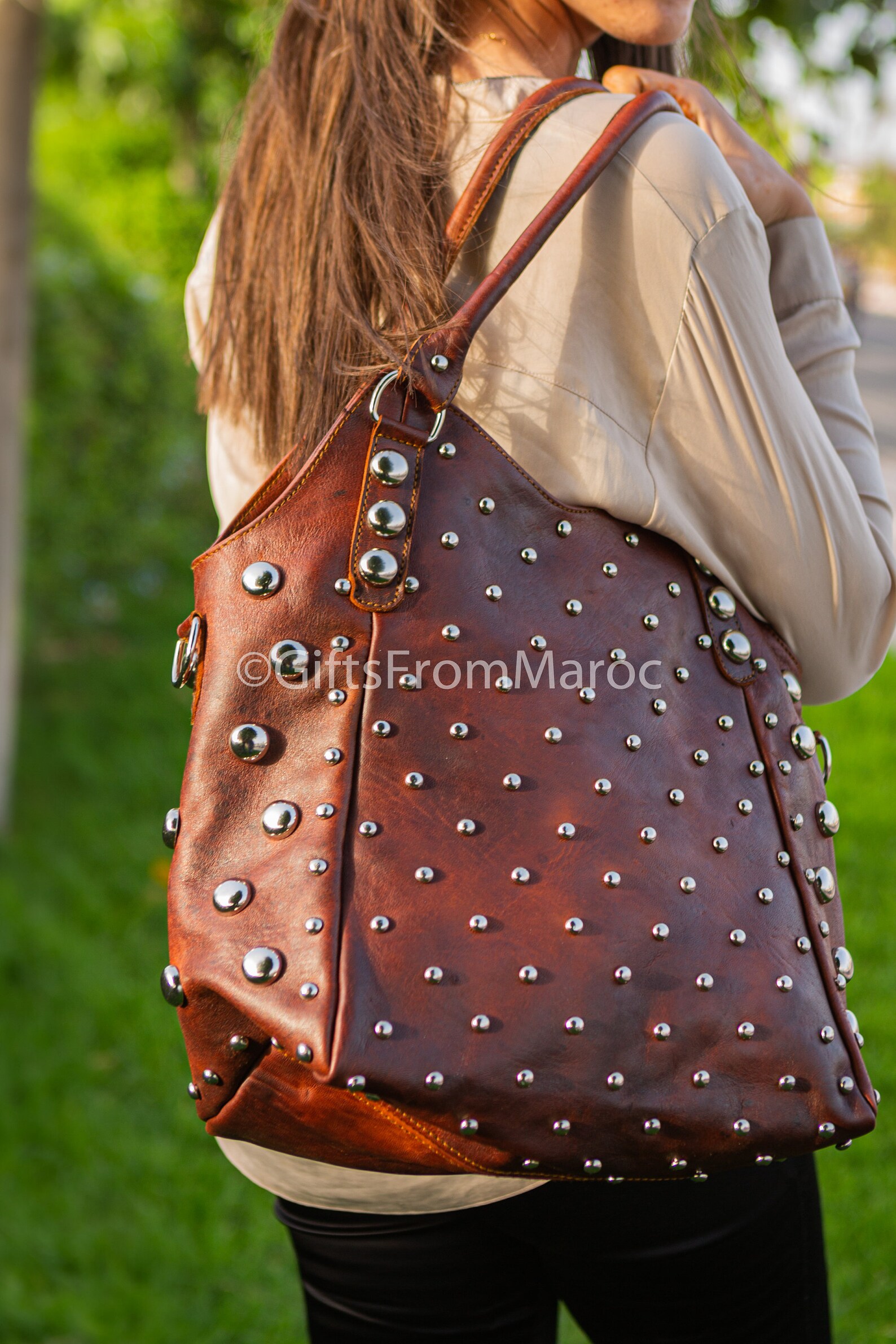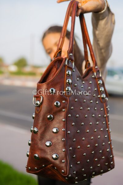 - This Polka Dot bag is crafted from premium leather, help both durability and a luxurious feel. The eye-catching polka dot pattern injects a touch of fun, while the studded accents add a stylish edge. The spacious interior provides ample room for your everyday essentials, making it perfect for shopping trips or days out. Carry it comfortably as a tote or sling it over your shoulder its versatile design adapts to your needs. A statement piece that combines practicality with playful style, this bag is sure to turn heads.