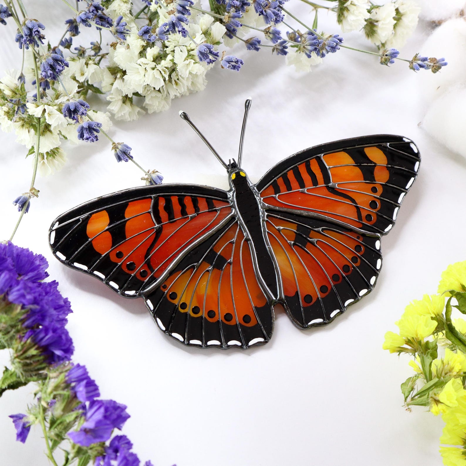Premium Quality Materials: Crafted with high-quality stained glass and durable metal framing, this suncatcher is built to last. The vibrant colours are fade-resistant, help your butterfly will remain a beautiful focal point in your home for years to come. The sturdy construction fors years of enjoyment.
