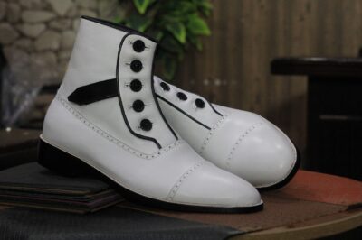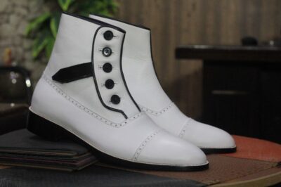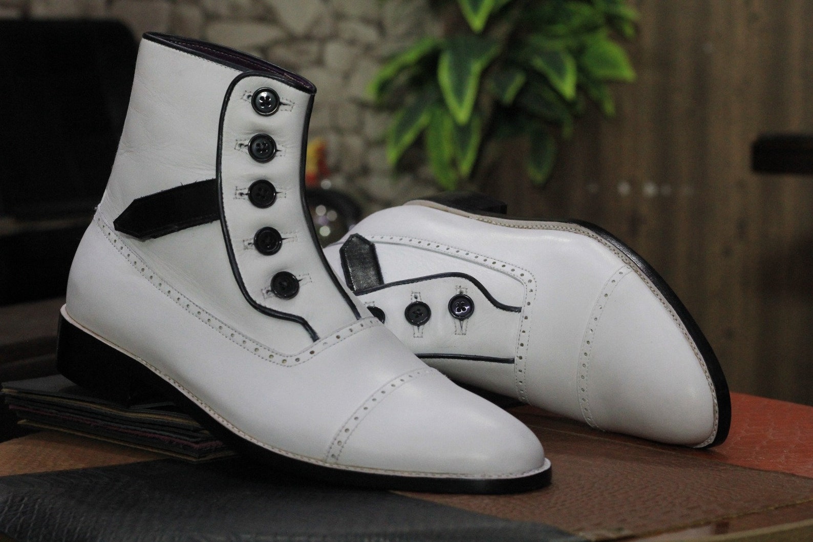 Timeless Elegance: Step into sophistication with these meticulously handcrafted men's white cap-toe dress shoes, embodying a classic style that transcends fleeting trends. The pristine white hue exudes confidence and makes a bold statement, perfect for weddings, special occasions, or adding a touch of refined flair to your everyday attire.